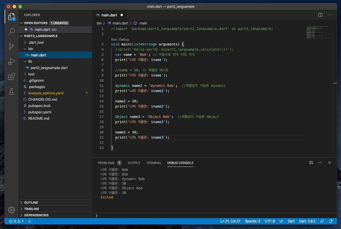 기본 Dart Program