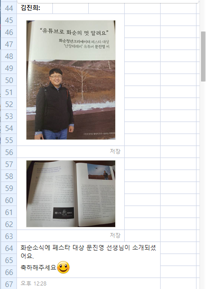 화순 청년 크리에이터 양성교육에 참여했던 수강생을 중심으로 실시했던 페스타도 이렇게 큰 관심을 받을지 상상도 못 했습니다. 개인적으로 우리끼리 하는 행사이니 우리만 알겠구나 했던 생각이 무색할 만큼 페스타 영상을 보신 분들도 많았던 것 같고 얼마 후 화순 소식 기자님께도 연락이 왔습니다.