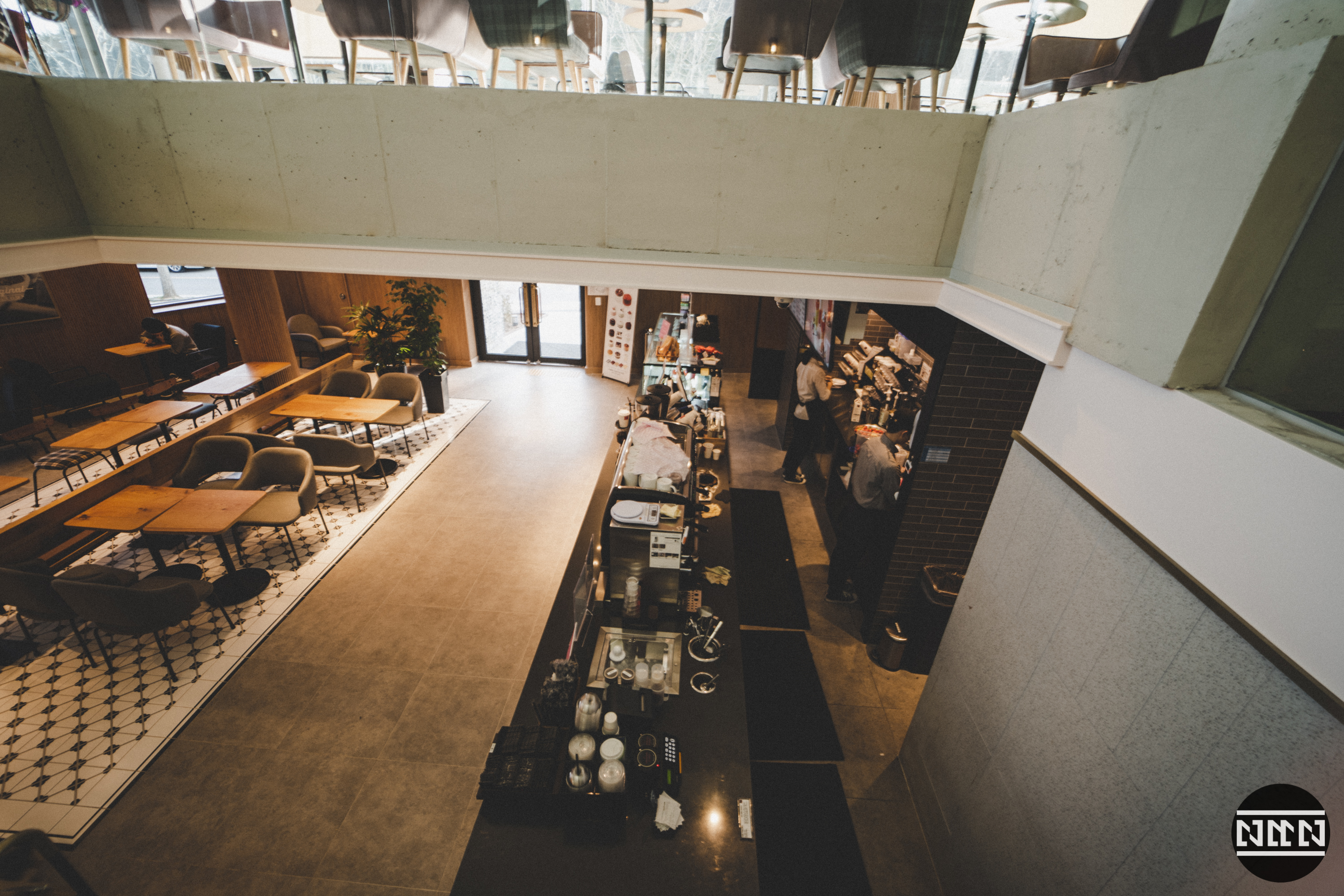 1층은 주문이 가능한 카운터와 키친이 있다. 1층의 크기가 보통 개인이 운영하는 카페의 경우의 크기로 상당히 넓은 편이다.