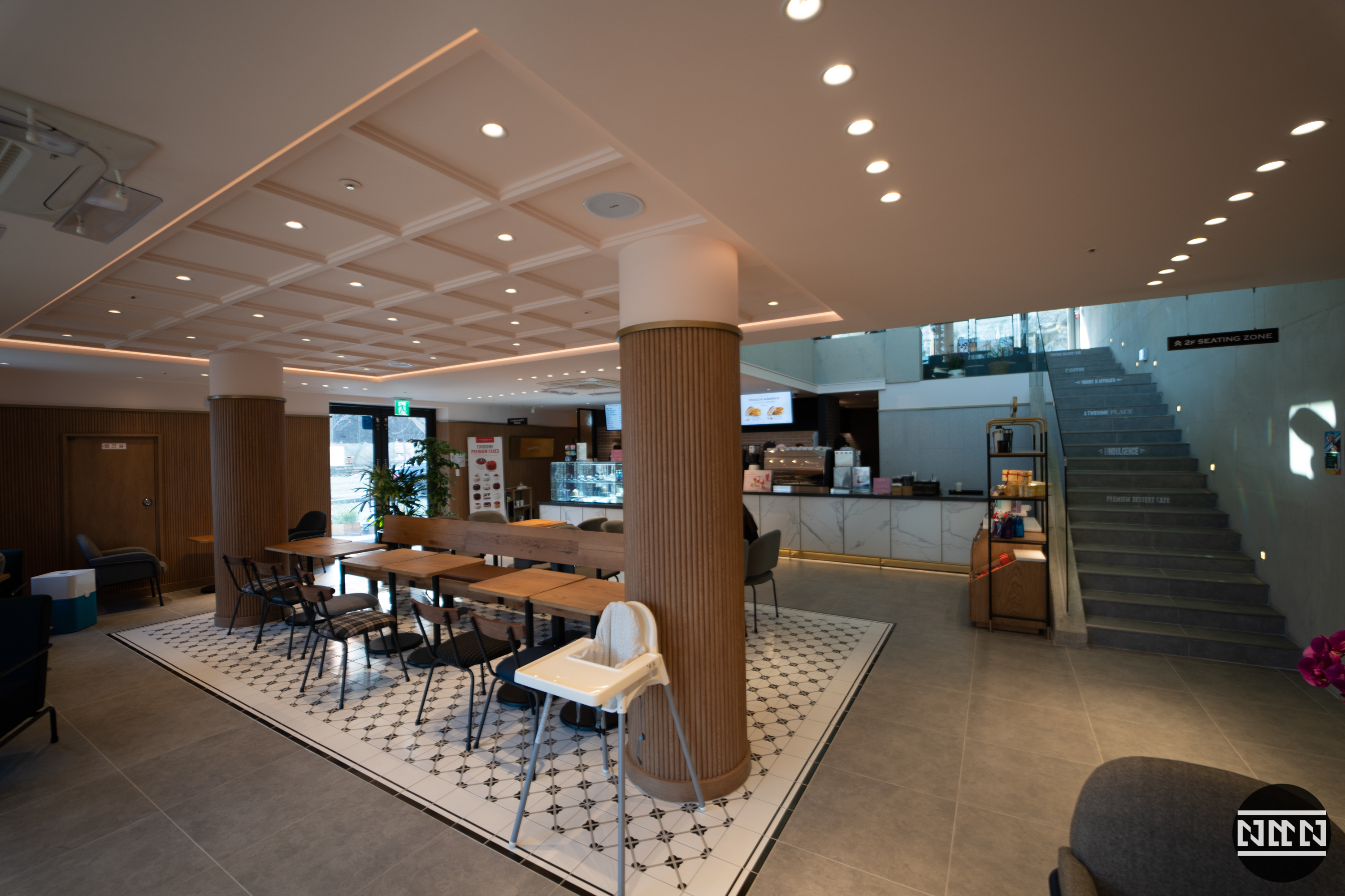 1층은 주문이 가능한 카운터와 키친이 있다. 1층의 크기가 보통 개인이 운영하는 카페의 경우의 크기로 상당히 넓은 편이다.