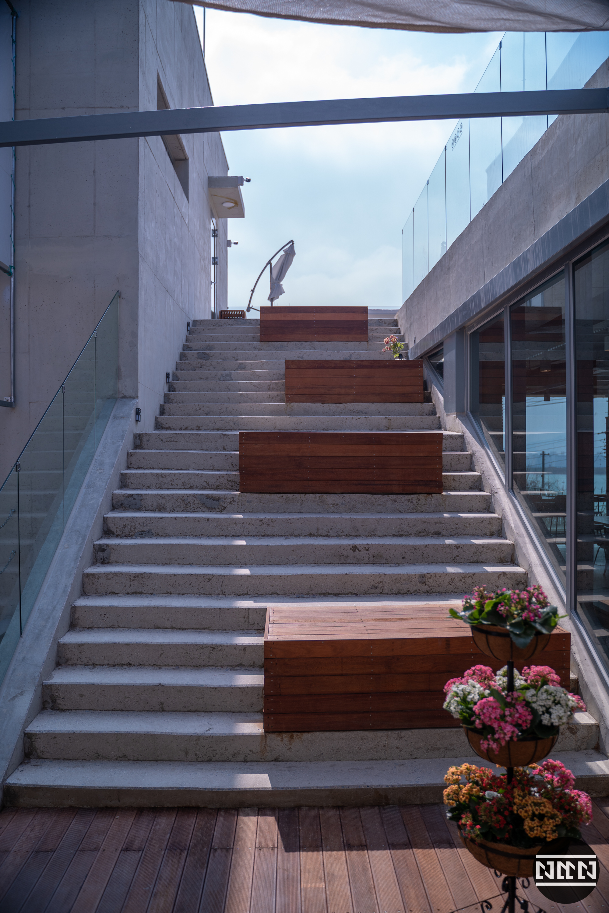 루프탑 올라가는 계단. 여기서는 천장이 없다. 4층을 그냥 옥상이라고 생각해도 될 듯.