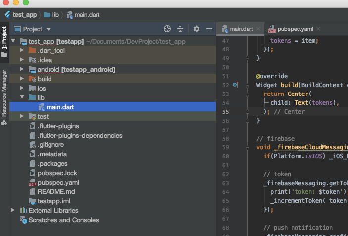 참고로 디바이스 토큰 값이 있어야 해당 디바이스로 푸시메시지를 보낼 수 있는데 이건 일단 위에서 작업이 끝난 Flutter 프로젝트를 빌드하면 된다.