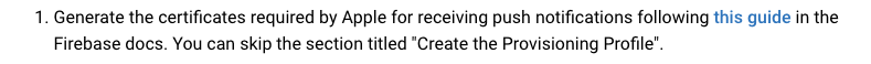첫 번째로 Firebase의 안내에 따라서 푸시 인증에 필요한 인증서를 생성하라고 했는데 우린 firebase 설정을 이미 했기에... 모르겠다면 이전 포스팅 참조.