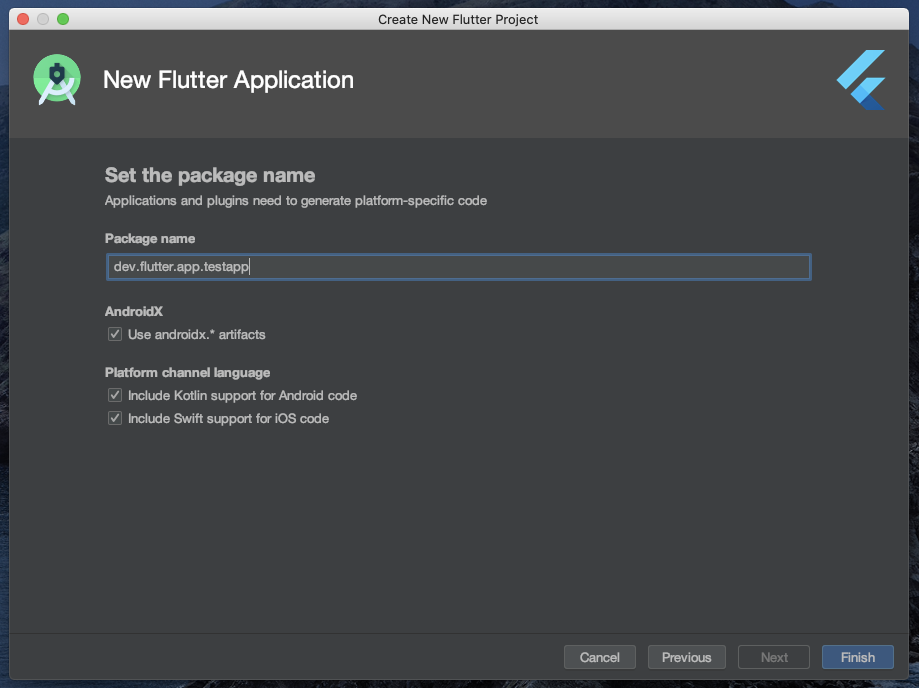 프로젝트 생성하면서 가장 중요한 "Package Name". FCM에서 입력했던 것과 동일하게 해야 한다. 프로젝트를 먼저 생성했다면 여기서 만든 패키지 이름을 FCM에서 설정해서 사용하여야 한다.