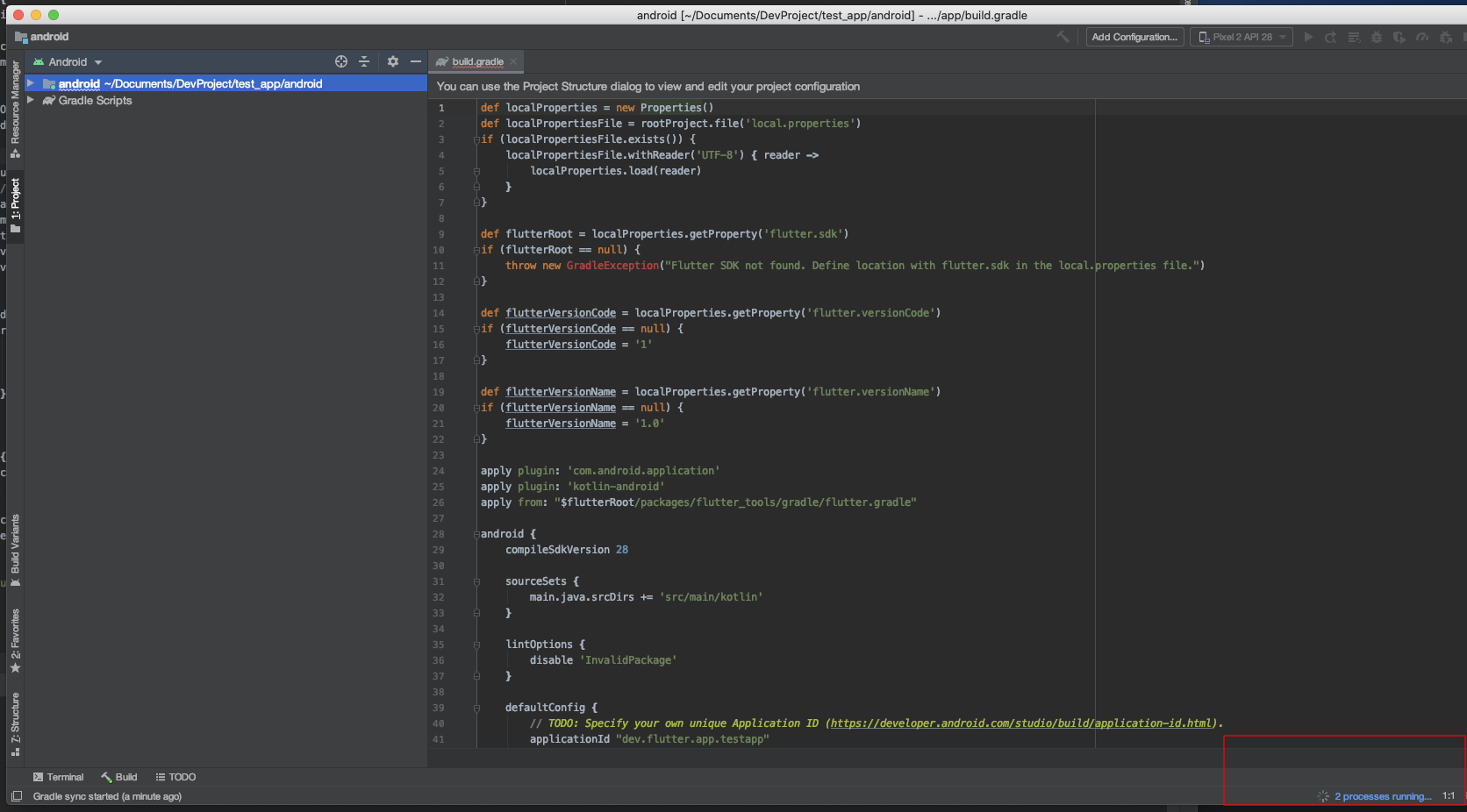 이렇게만 놓으면 gradle에 넣었던 의존성 라이브러리들을 자동으로 가지고 올수가 없다. 귀찮지만 안드로이드 스튜디오를 프로젝트 단으로 실행할 필요가 있다.