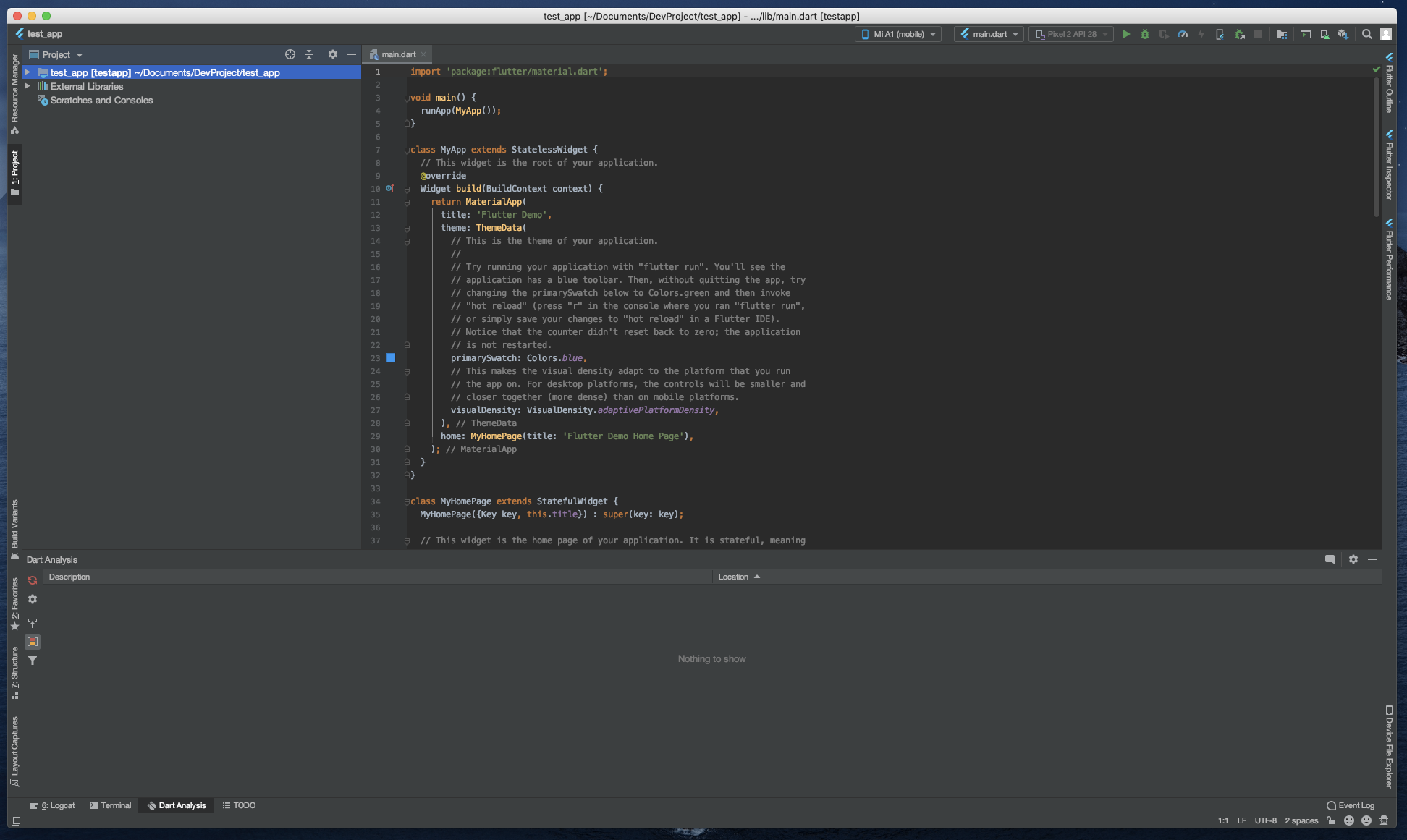 lib/main.dart를 열고 코드를 수정한다.