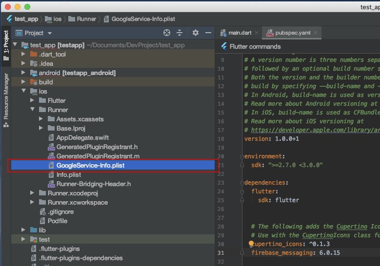 간단하게 지난 포스팅에서 다운로드한 "GoogleService-Info.plist"를 "ios/Runner"에 추가한다.
